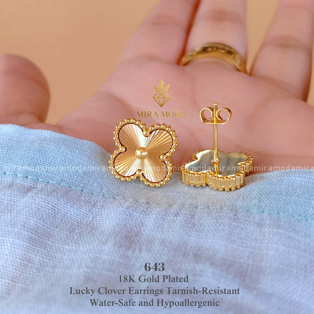 - 643-15mm Lucky Clover Stud Earrings | MIRA MODA