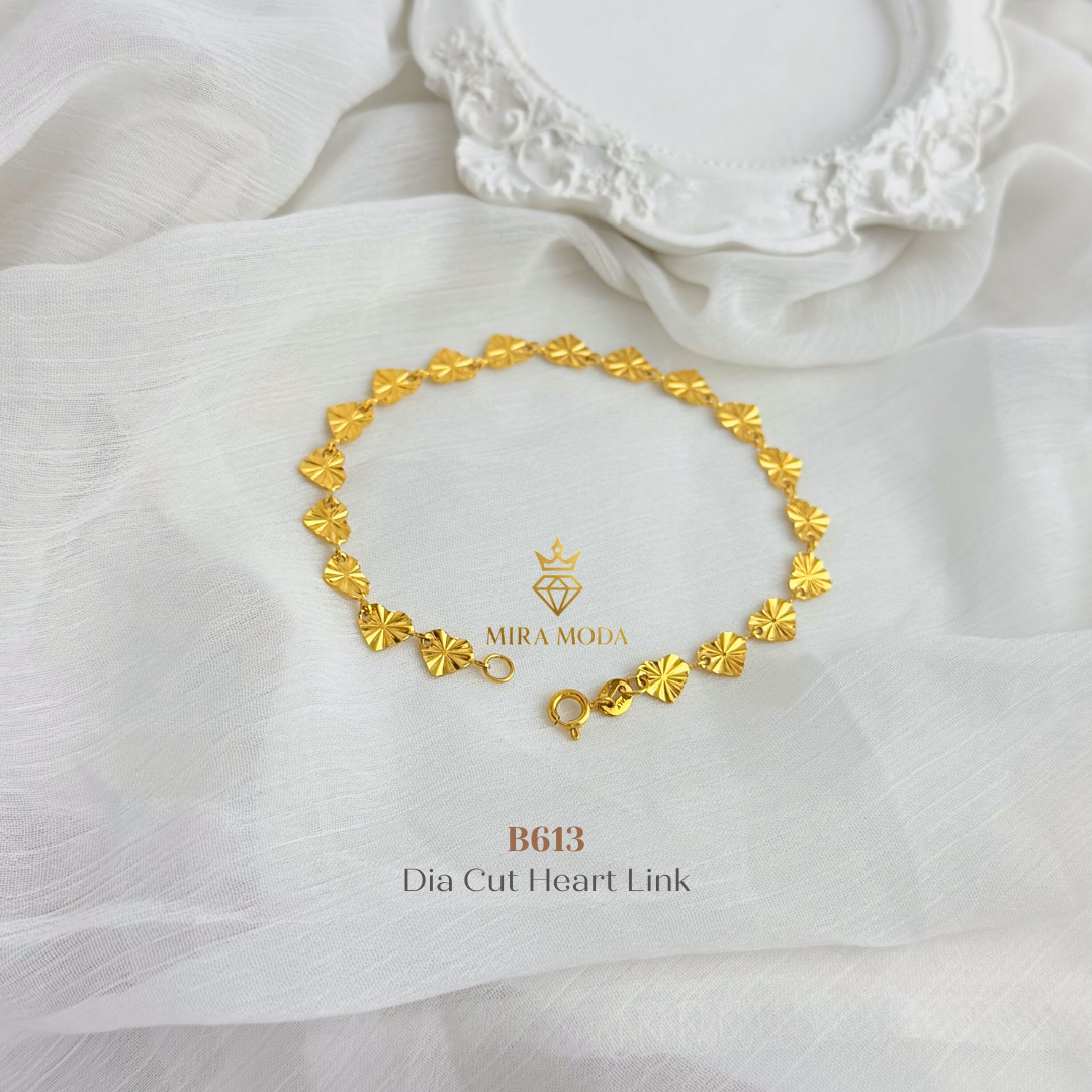 - B613 –Dia Cut Heart Link Motif Bracelet | MIRA MODA